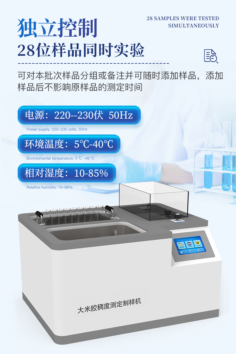 【產(chǎn)品簡介】1、用途:適用于糧油檢測大米膠稠度的測量配套設(shè)備,滿足GB/T22294-2008標準要求。2、工作條件:2.1電源:220--230伏, 50Hz;環(huán)境溫度:5℃-40℃;相對濕度:10-85%3、···